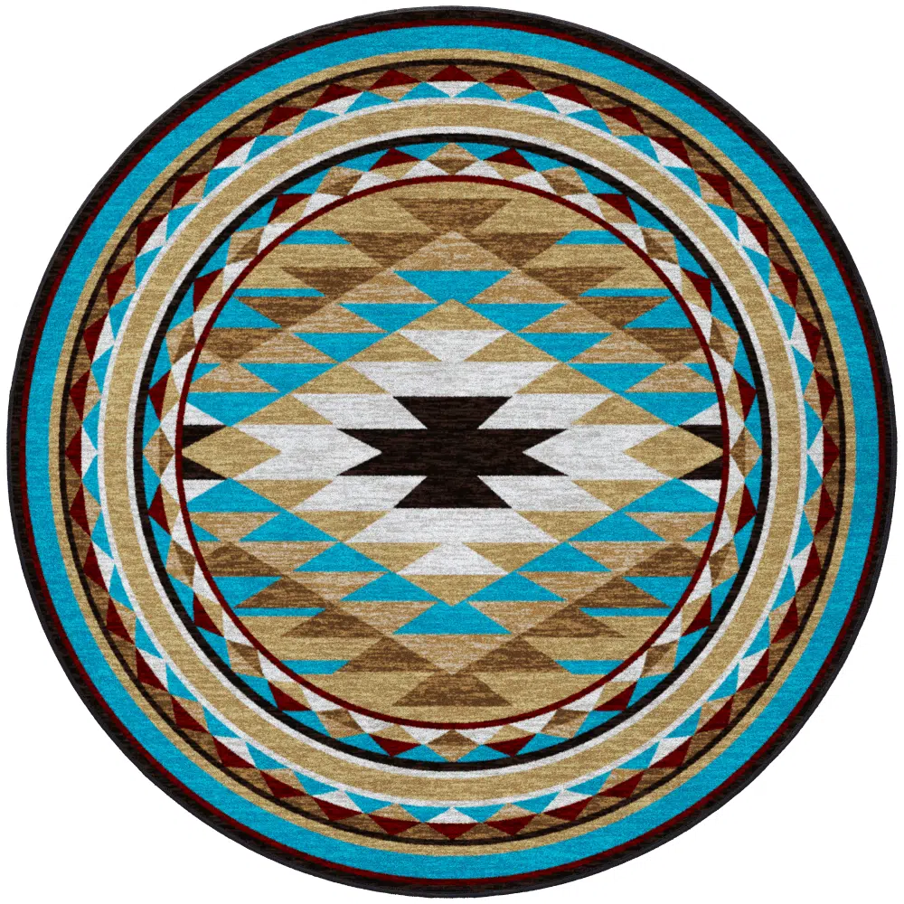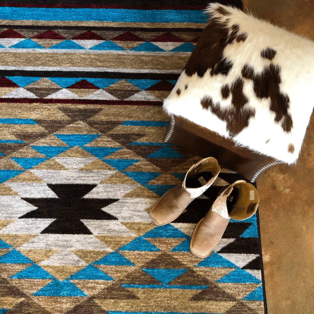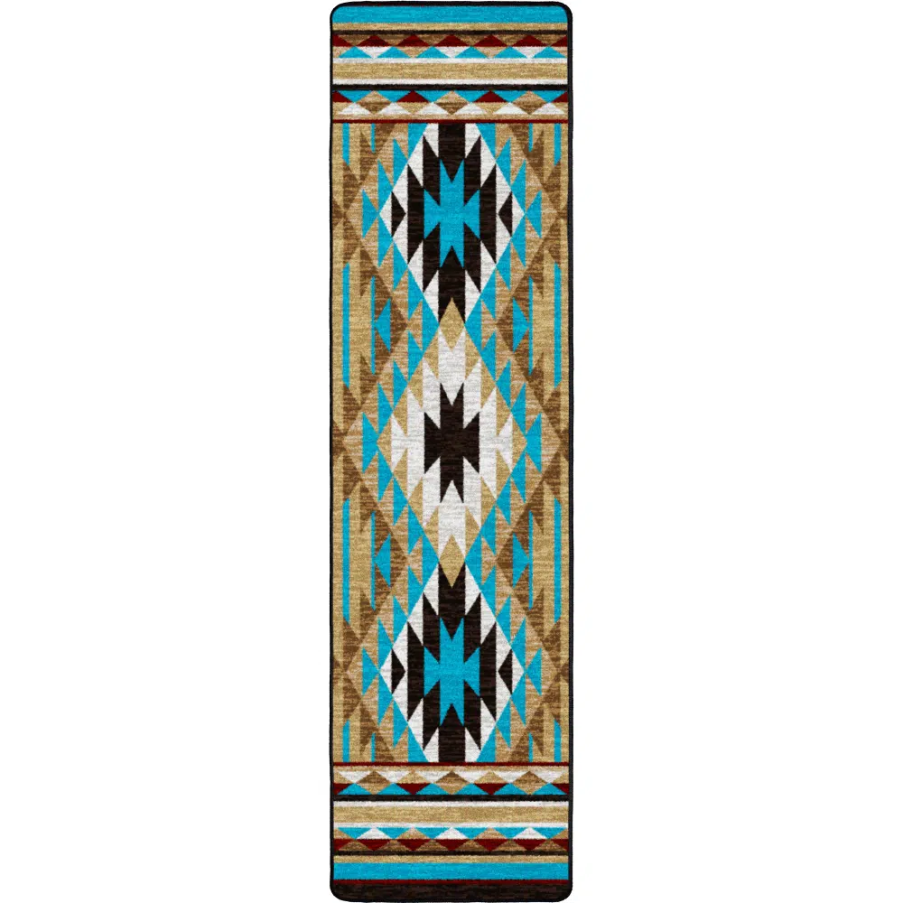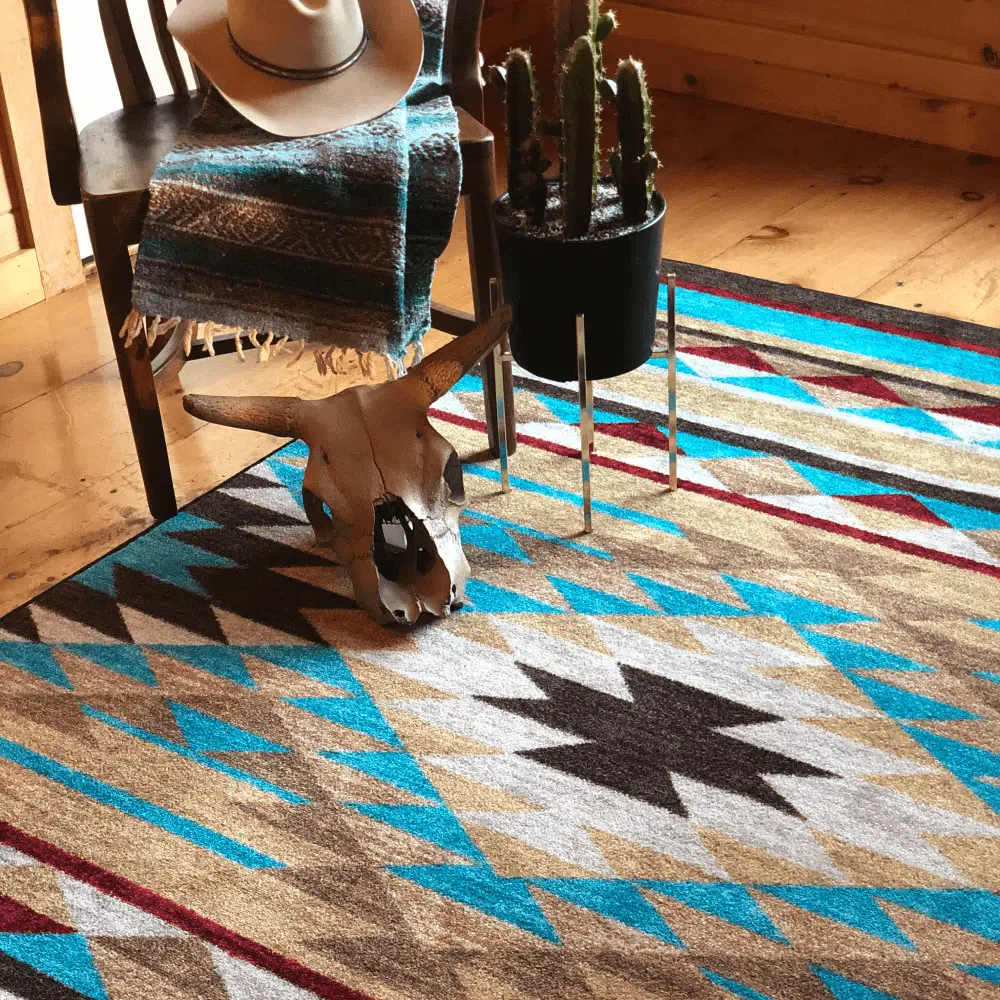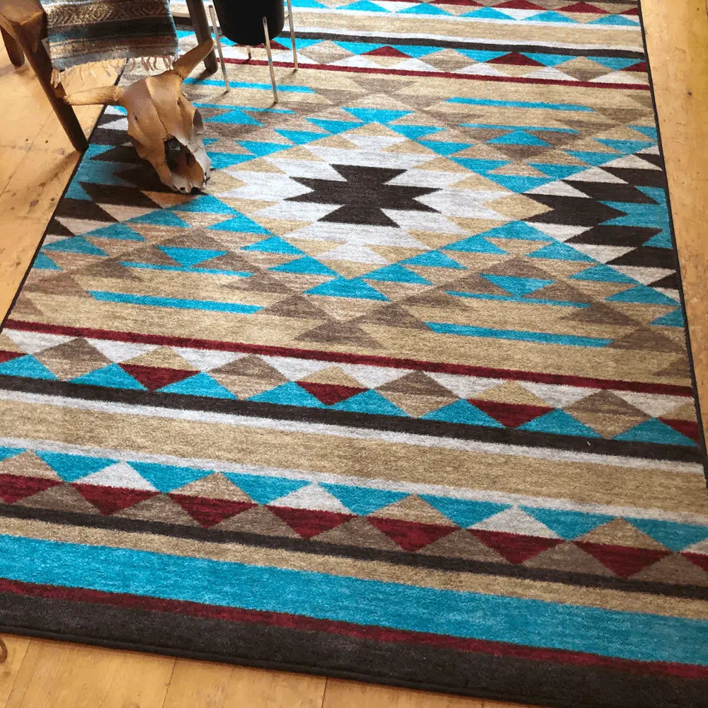 Electric blues and reds offset earthly beiges and browns in this beautiful southwest pattern, with repeating diamond motifs all around.