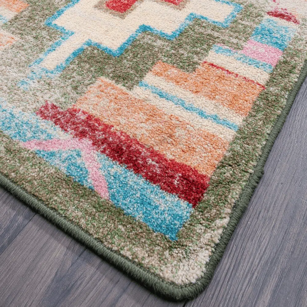 Inspired by the Southwest this geometric rug will sure add some interest to any room in your home. Proudly made in the USA.